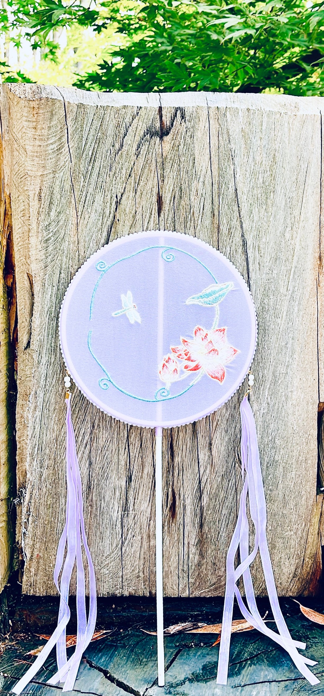 Inspired by the lotus and dragonfly, this handcrafted silk fan embodies purity, transformation, and harmony. In Chinese culture, the lotus symbolizes enlightenment, resilience, and spiritual growth, blooming gracefully above the water despite its humble roots. Paired with the dragonfly—a symbol of change, adaptability, and lightness of being—this fan captures the beauty of nature’s delicate balance and the journey toward inner peace.