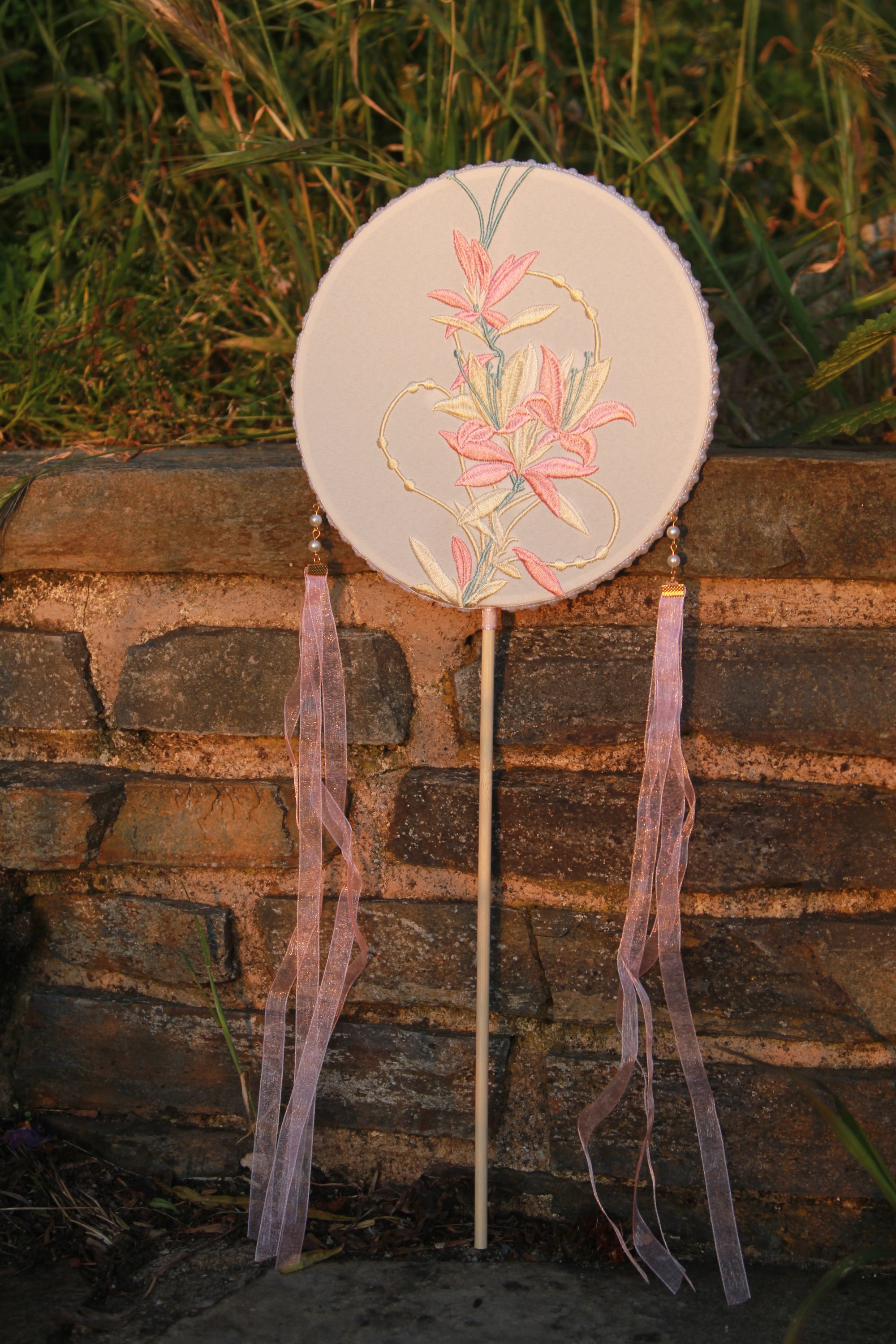 Museum Co-branded Chinese Traditional Handmade Silk Woven Fan - Pink Lily
