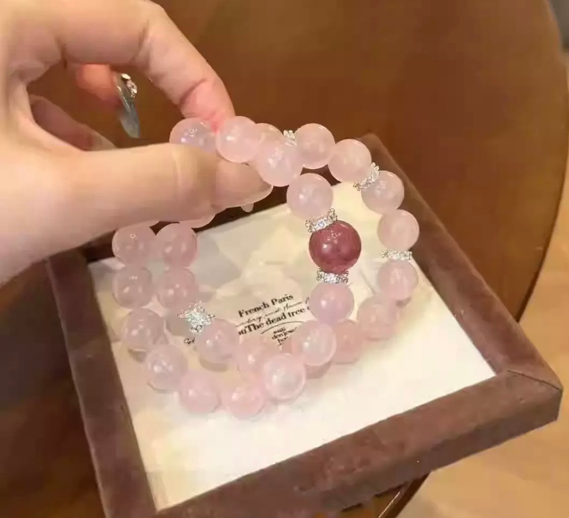 Gentle as the morning light, this rose quartz bracelet is crafted from natural pink crystals, each one radiant and translucent, exuding a soft, calming glow. It’s like carrying a little warmth and positivity wherever you go.